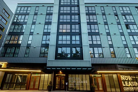 By comparison, a glazed curtain wall is meant for taller, multi-story applications (anything from low- to hi-rise buildings). In many instances, it is designed strictly as a glazed system rather than one with doors. Glazed curtain walls also offer more resistance to air and water penetration than a standard storefront. Additionally, they tend to perform better structurally in higher wind load applications. These conditions are normally found higher on a building’s façade or at corner conditions, rather than the street level entrance type situations where storefronts are employed.
